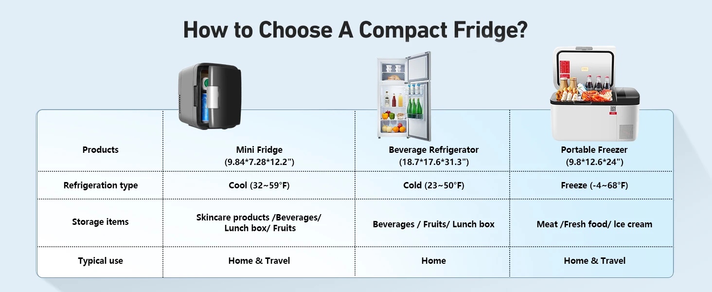 This fridgefeatures a specially designed compact body and lightweight structure. It allows you to carry it effortlessly, and provides a fresh-keeping effect for your cosmetics, food, and even medications.Dual-purpose design: